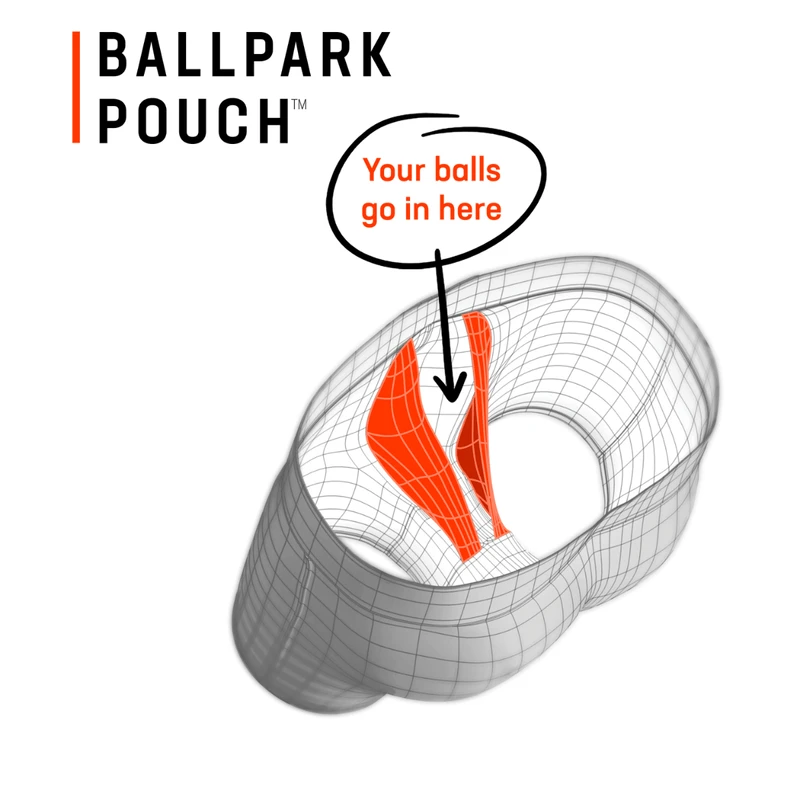 - BallPark Pouch™ PRO: A 3D hammock-shaped pouch designed to keep everything in place. Thanks to mesh panels and Flat Out Seams™, the BallPark Pouch™ prevents skin-against-skin friction and ensures chafe-free support.